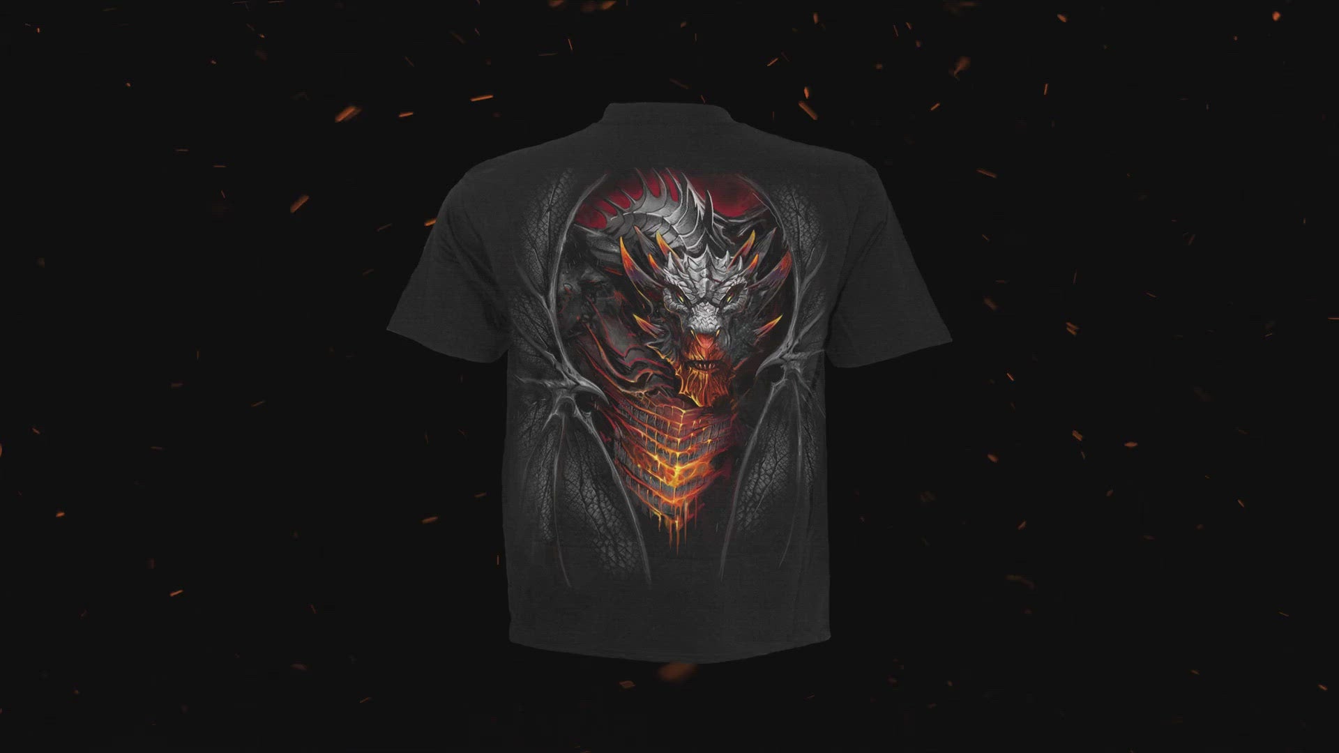 Wings of charred sulphur envelope the suffocating heat burning from within this dragon’s belly. Molten lava seeps from every crack along her body, dripping to the ground where furious flames whip and lick at her feet.
