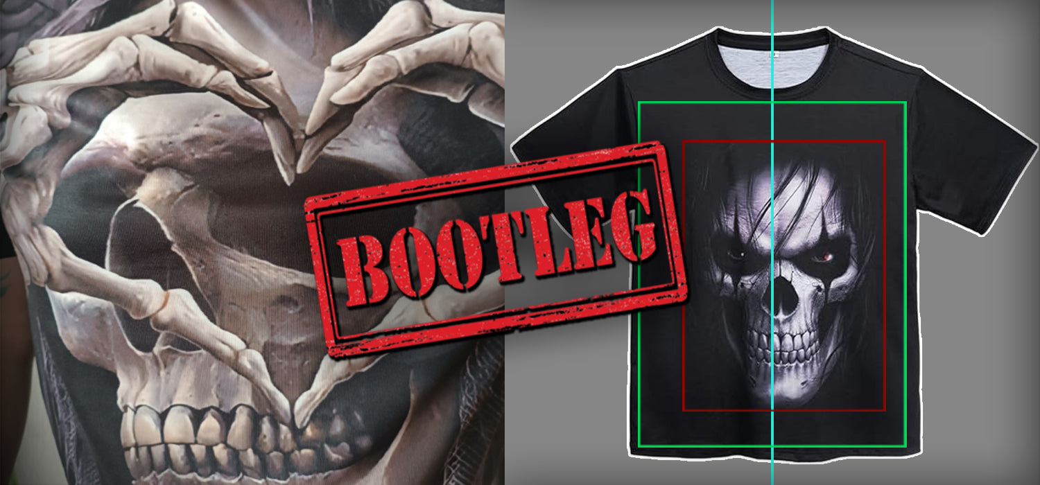 Many knockoff versions of our products are printed digitally on cheap low-quality polyester. This material starts off white, and black is printed on top. This results in visibly white seams and white showing through when the fabric is stretched.